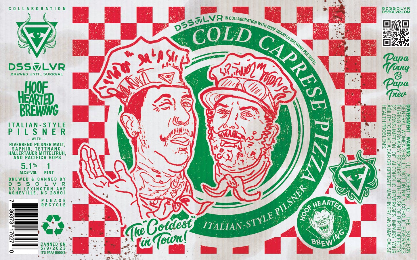 Mama Mia! Gather ’round, because the most bellissimo Pizza-branded Italian Pilsner collab with our dear amici @hoofheartedbrewing, “Cold Caprese Pizza,” is making a delicioso return! Mashed with love and care, using only the finest @riverbendmalt Cumberland Pilsner, and treated to our special Lager enchantment on the hot side. We hop it up ever so vigorously in the Whirlpool with Pacifica and Hallertauer Mittelfruh, let it ferment slow and gentle with our House Lager yeast, spund it for that 100% natural fizz, and sprinkle in some Tettnanger and Saphir in the dry-hop finale before letting it rest peacefully in our Horizontal Tanks for many moons.