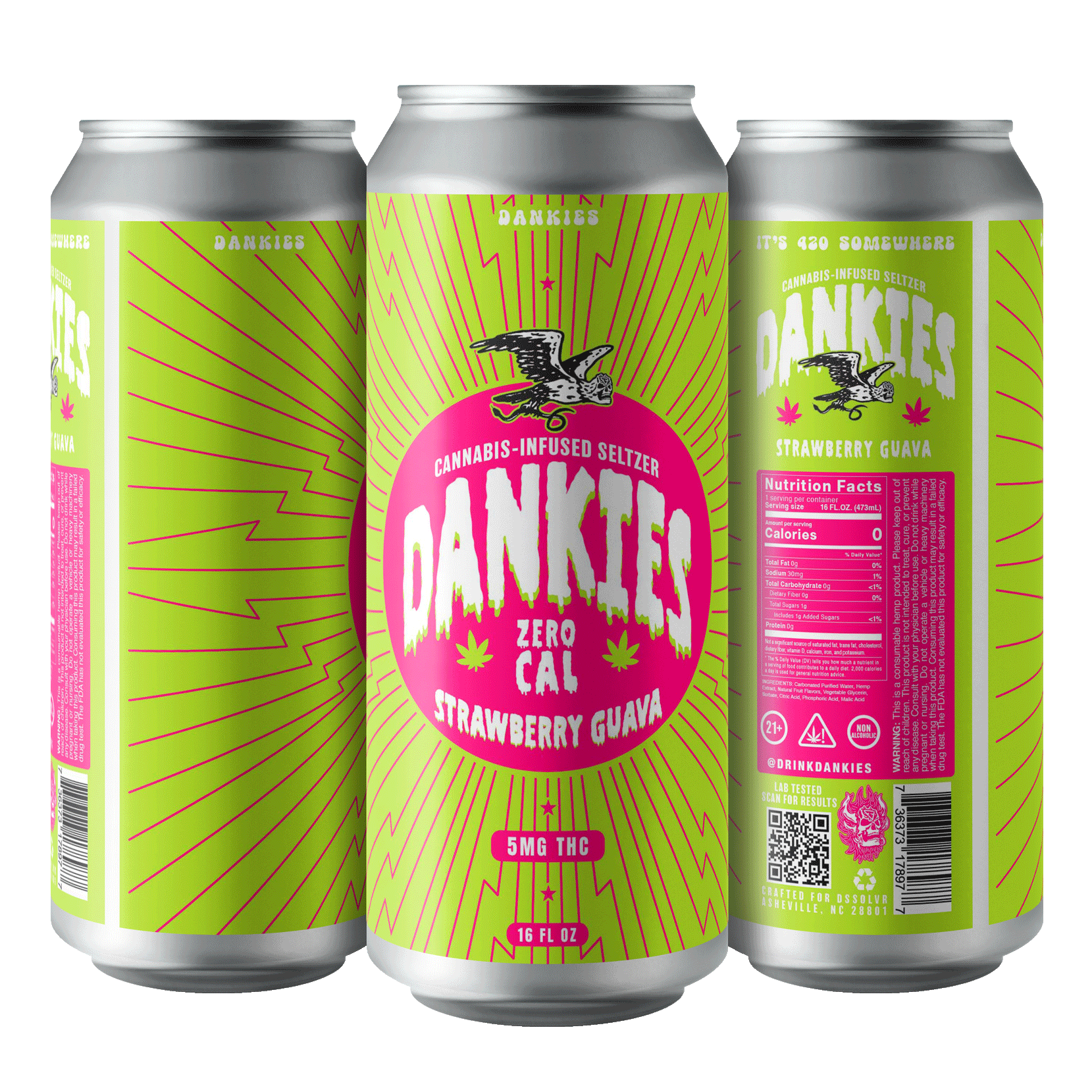 We are proud to introduce “Dankies Zero Cal: Strawberry Guava”! A new ZERO-CAL flavor of THC Seltzers for all to enjoy, crafted with purpose by the beverage wizards behind DSSOLVR. “Dankies Zero Cal: Strawberry Guava” is as delightful than finding out your favorite bar has a non-alc option to keep the party rolling. At 5mg of THC per can, this THC Seltzer is something we’ve been proud to introduce for a while, so grab a can and let’s get this party started!