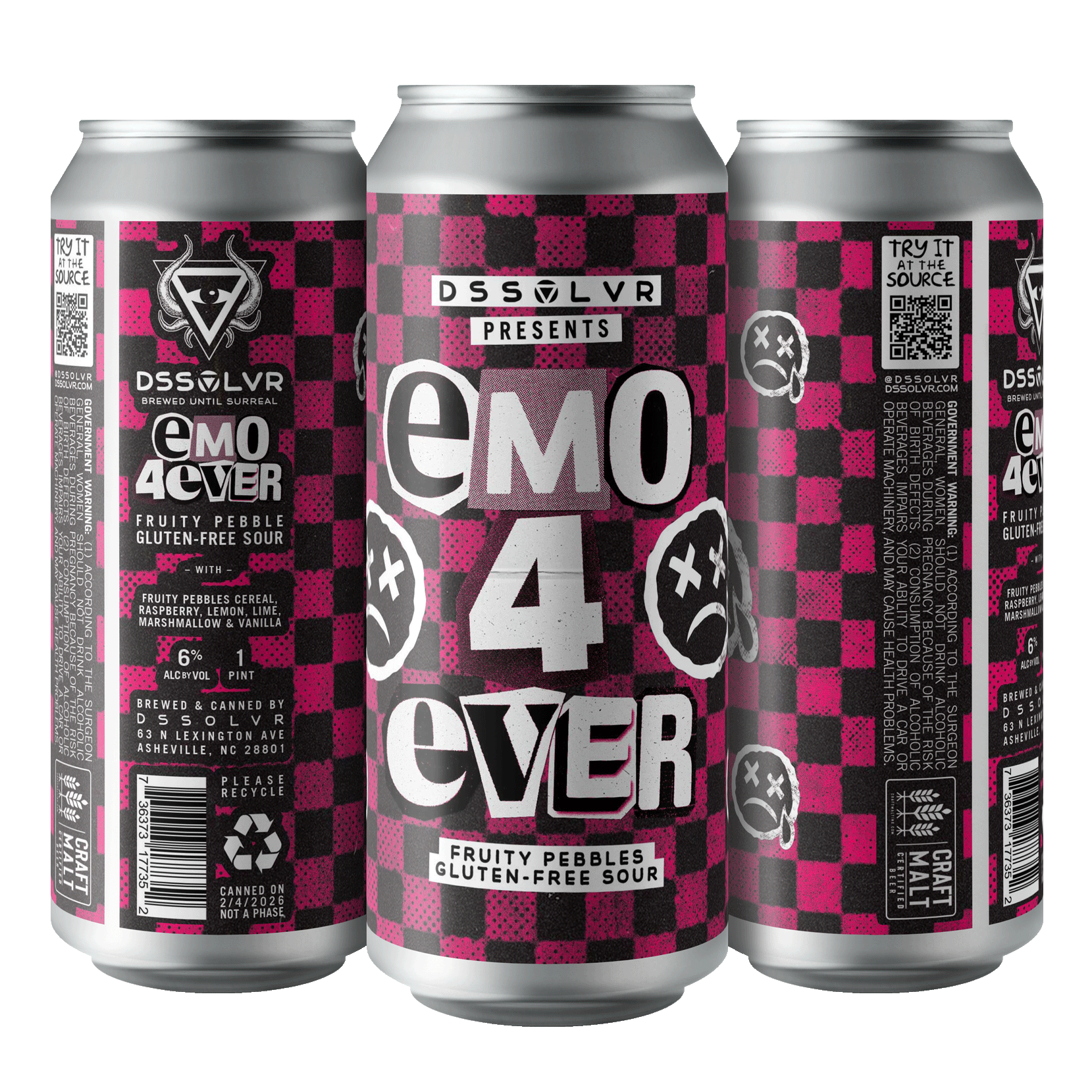 Slide down the dinosaur tail of memory lane with our newest iteration of: “Emo Nightmare!” “EMO 4EVER”. (Same beer, new name). This nostalgia-driven GLUTEN FREE Fruited Sour boasts a blend of Raspberry, Lemon, Marshmallow, and heaps of Fruity Pebbles cereal—yes, you read that right, a Jurassic sized volcano of cereal!!! We upped the volume on all of the ingredients this year and the results were so good we renamed the dang thing!